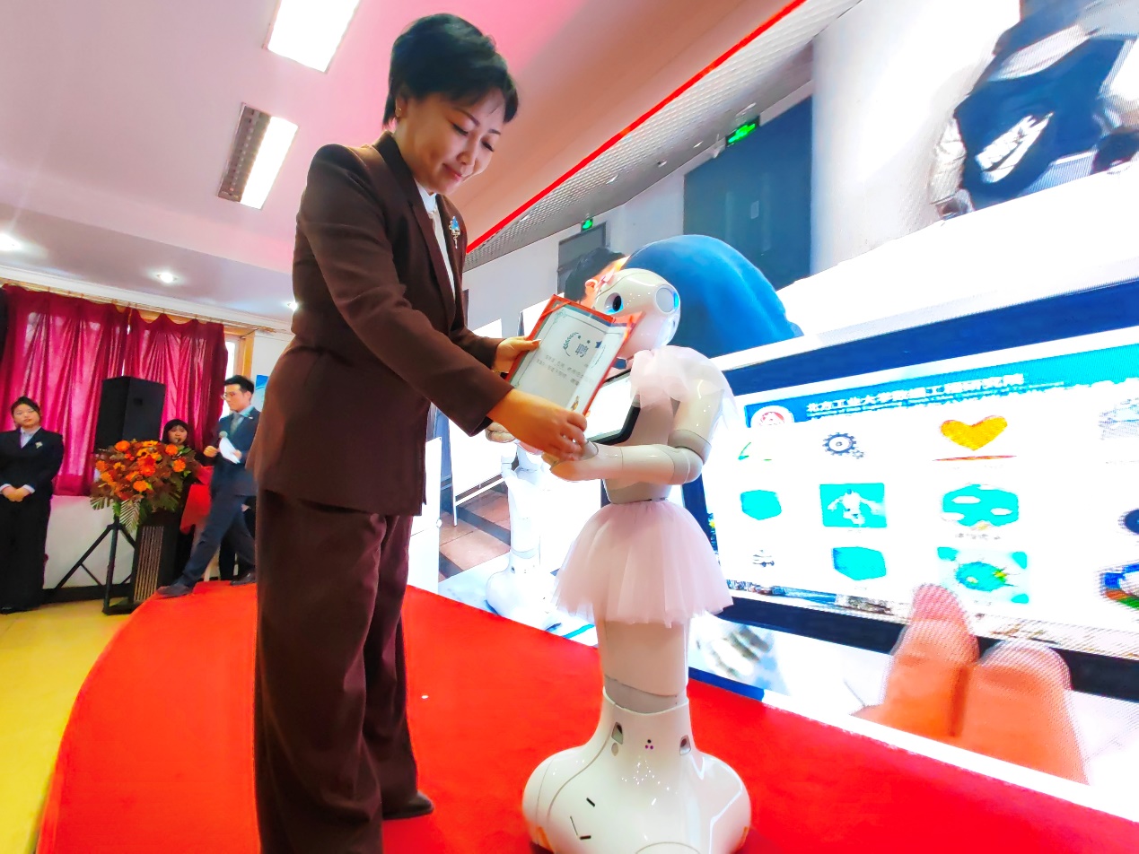 活动当天,永利官网党委副书记陈卫为“吉祥”老师送出寄语,期待她能够积极工作,为孩子们提供情感交互与陪伴,让孩子们的世界将变得更加丰富多彩。小飞象训练发展中心理事长赵星郑重地为“吉祥”老师颁发了聘书,标志着这位智慧机器人将正式肩负起孤独症儿童科技康复的重任。活动中,这位智慧与温情并存的机器人“吉祥”老师,不仅与“星宝”们共同演绎了《小猪吃的饱饱》、《元日》、《阳光彩虹小白马》等节目,生动展示了科技与教育的深度融合,更体现了实验室在科技创新与人文关怀方面的双重追求。活动受到《北京日报》、《北京青年报》、石景山电视台、石景山融媒体等媒体报导。