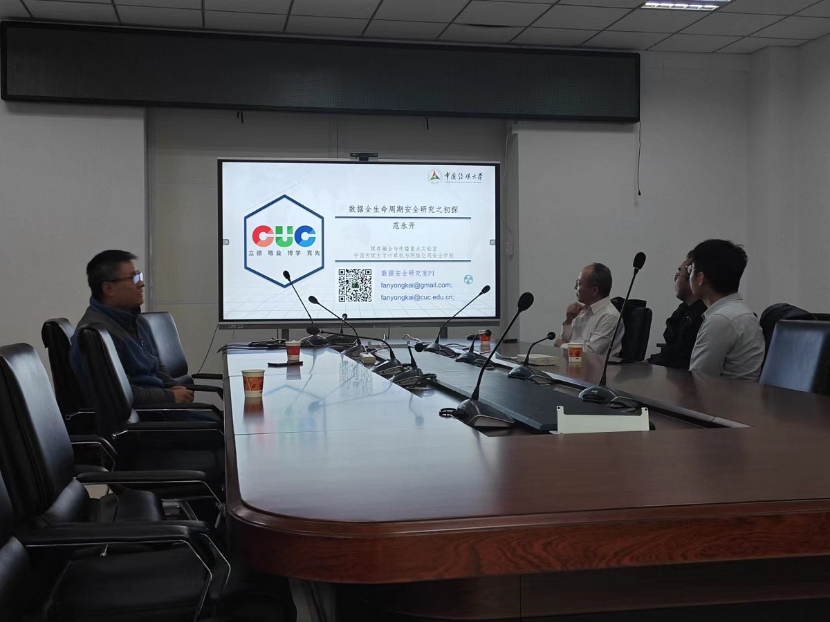 11月6日下午,应永利官网邀请,南开大学教授、博士生导师汪定、中国传媒大学网络与空间安全学院教授姜正涛和中国传媒大学网络与空间安全学院教授范永开在博远楼1023来永利官网开展学术报告,分别题为“如何评估口令强度评测算法”,“数据全生命周期安全研究之初探”以及“可搜索加密技术与算法”。通信工程专业责任教授张键红主持,通信工程专业30余名研究生参加。