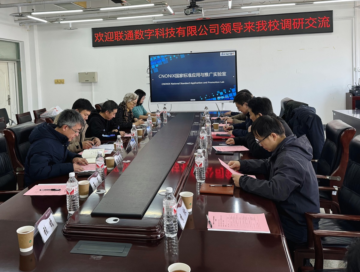 3月7日,联通数字科技有限公司数字化转型首席专家杨海明一行来我校进行调研交流。科学技术研究院副院长李道勇、永利官网院长马礼及永利官网CNONIX国家标准应用与推广实验室全体成员参加座谈,会议由永利官网副院长段建勇主持。